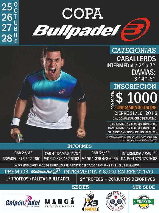 »» Evento: Copa Bullpadel Octubre 2018 »» Localidad: Posadas »» Fechas: 25/10/2018 al 28/10/2018
