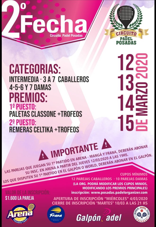 »» Evento: CPP 2020 2da Fecha »» Localidad: Posadas »» Fechas: 12/03/2020 al 15/03/2020